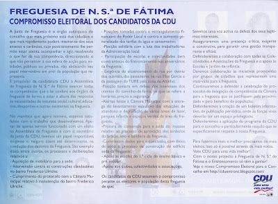 A CDU, que não está representada no Executivo, já solicitou o acesso aos documentos, para analise… lamenta não ter sido informada relativamente a documentos tão importantes, como estes, para o futuro do concelho e repudia a atitude lamentável do PS e do BE – «dá Deus nozes a quem não tem dentes» - ao não fazerem o que lhes compete, certos de que alguém mentiu: - ou abandonaram a reunião ou foram expulsos.